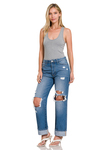 RIGID DISTRESSED CUFFED HEM BOYFRIEND DENIM PANTS